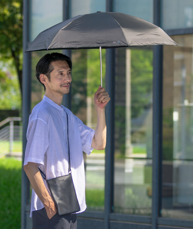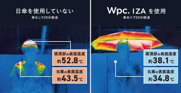 Wpc. IZAシリーズの傘はすべて生地の裏側が黒色のため、光の照り返しを軽減する効果が期待できます。