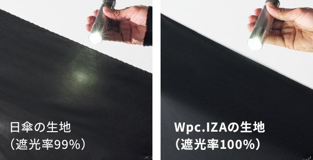Wpc. IZA シリーズの傘はすべて遮光率&UVカット率100%の生地を使用しているため、