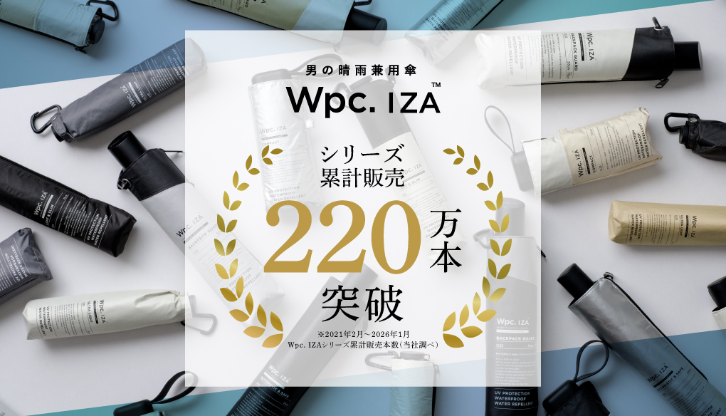 男の晴雨兼用傘「Wpc.IZA」は、ブランドローンチから5年目となる2025年、年間販売本数100万本を達成。シリーズ累計で220万本※を突破しました。6年目となる2026年は、さらにラインナップを拡充。乞うご期待ください。