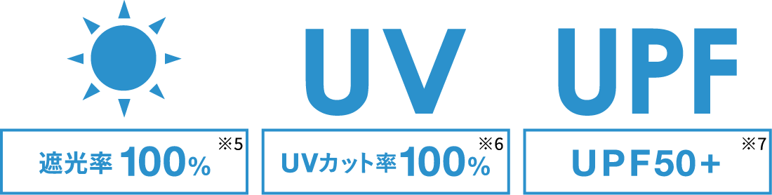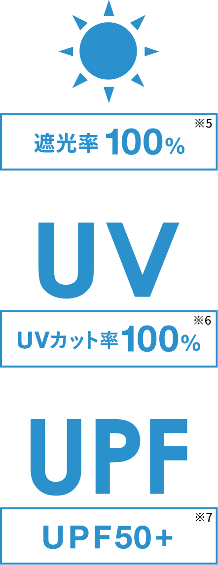 遮光率&UVカット率100%※5※6の生地を採用し、