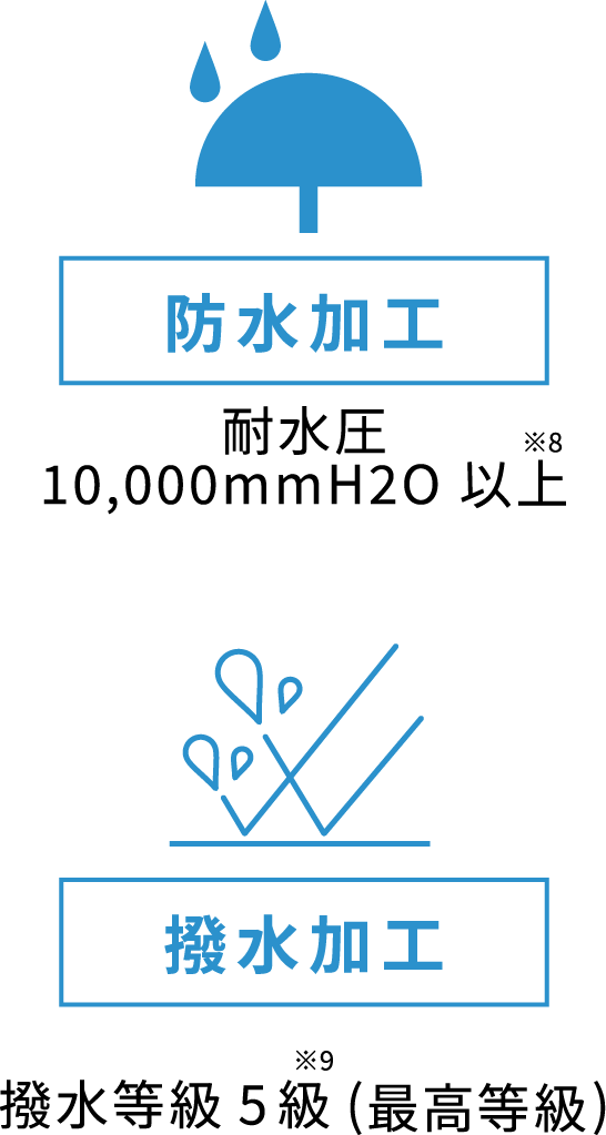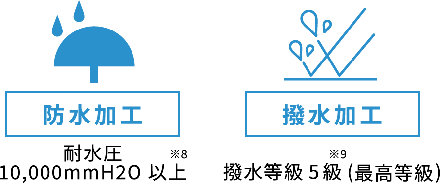 大雨でも安心の耐水性10,000mmH2O※8に加え、